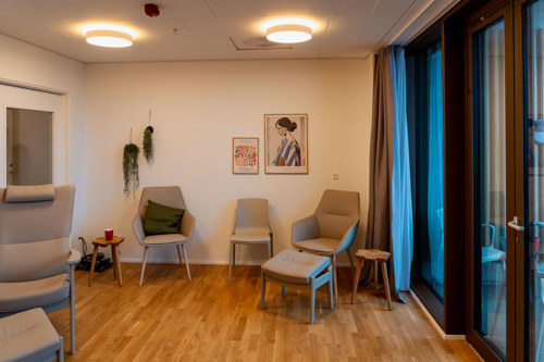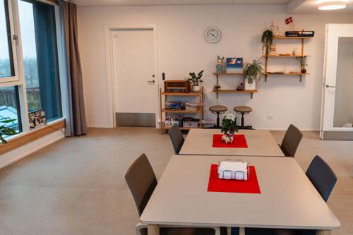 I Etape 3 får vores beboere stor glæde af de lyse og åbne fællesarealer, hvor de kan socialisere med de andre og blandt andet nyde frisk luft på tagterrassen, hygge med et ugeblad i lænestolen, eller se en film i dagligstuen.